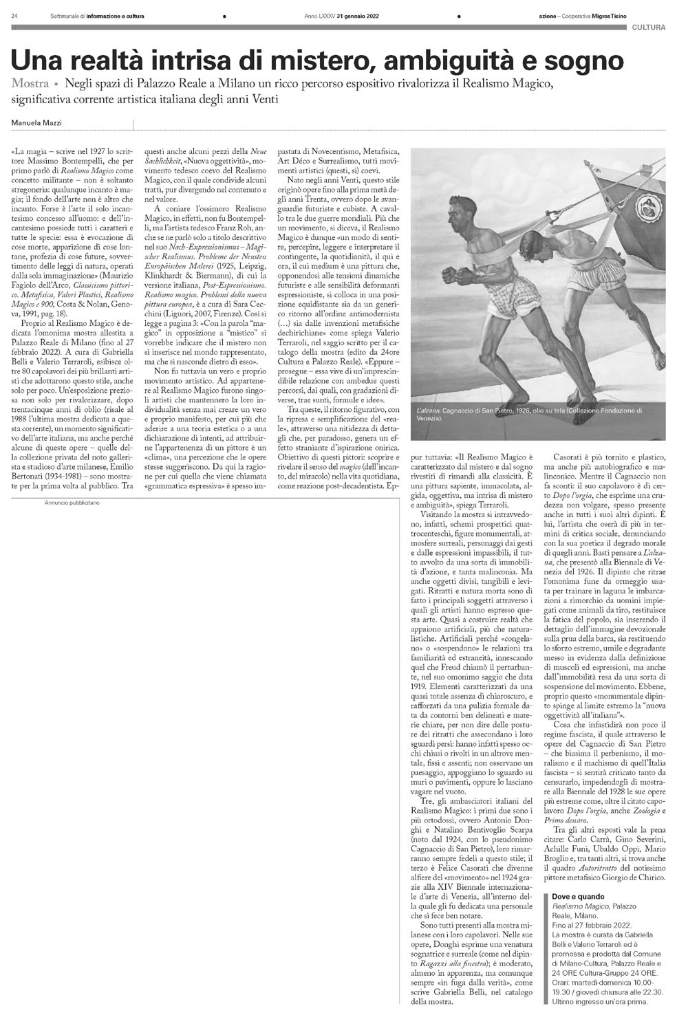 È uscito oggi su “Azione” un mio articolo che ho scritto sulla mostra dedicata al “Realismo magico”, al Palazzo Reale di Milano: molto bella.