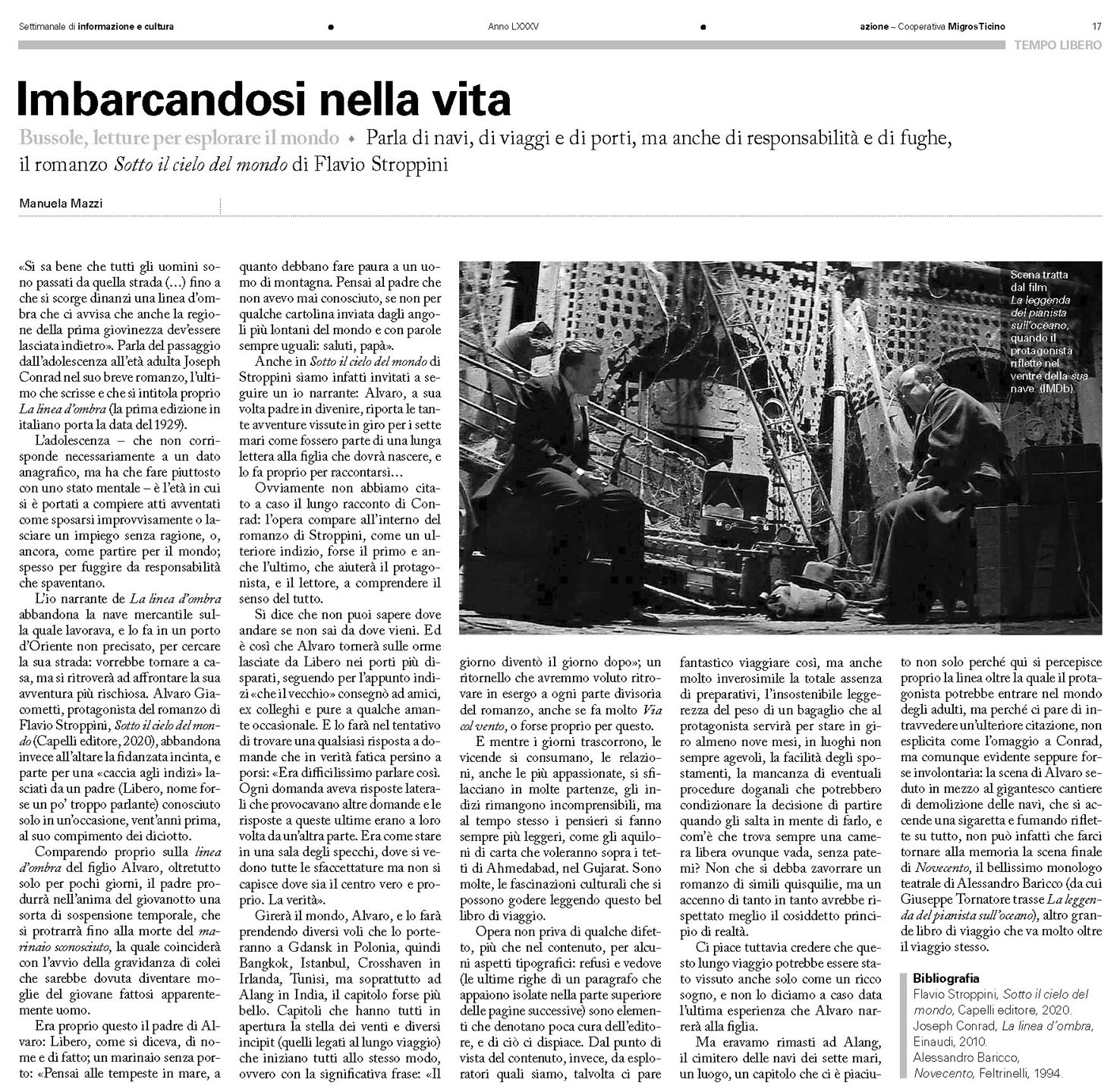 Ho letto Sotto il cielo del mondo di Flavio Stroppini (Gabriele Capelli Editore, 2019) e ne ho scritto su Azione. La versione integrale del testo – per chi desidera leggerlo ma non ha accesso al cartaceo – si trova scrollando verso il basso oppure online (non richiede iscrizioni perché è un settimanale d’approfondimento gratuito).