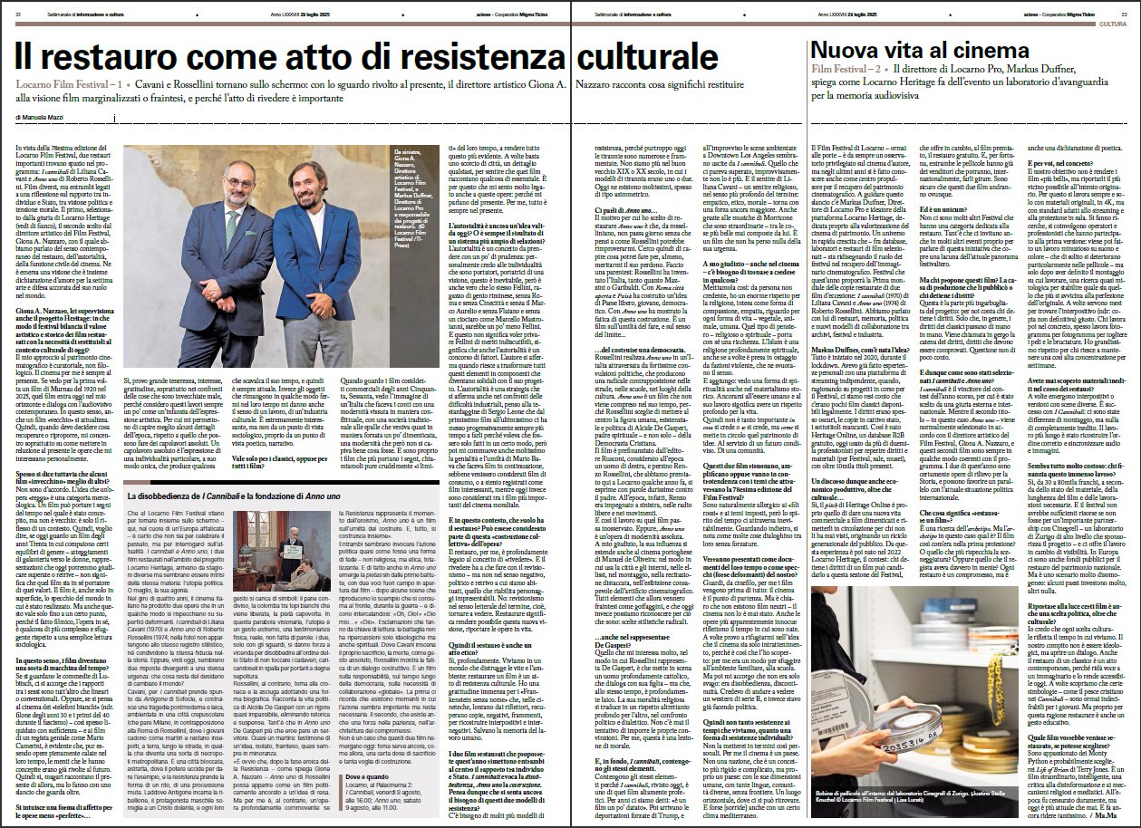 Sul settimanale svizzero “Azione”, l’intervista che ho avuto il piacere di fare ad Antonio Franchini, che sarà ospite del Festival Sconfinare di Bellinzona.