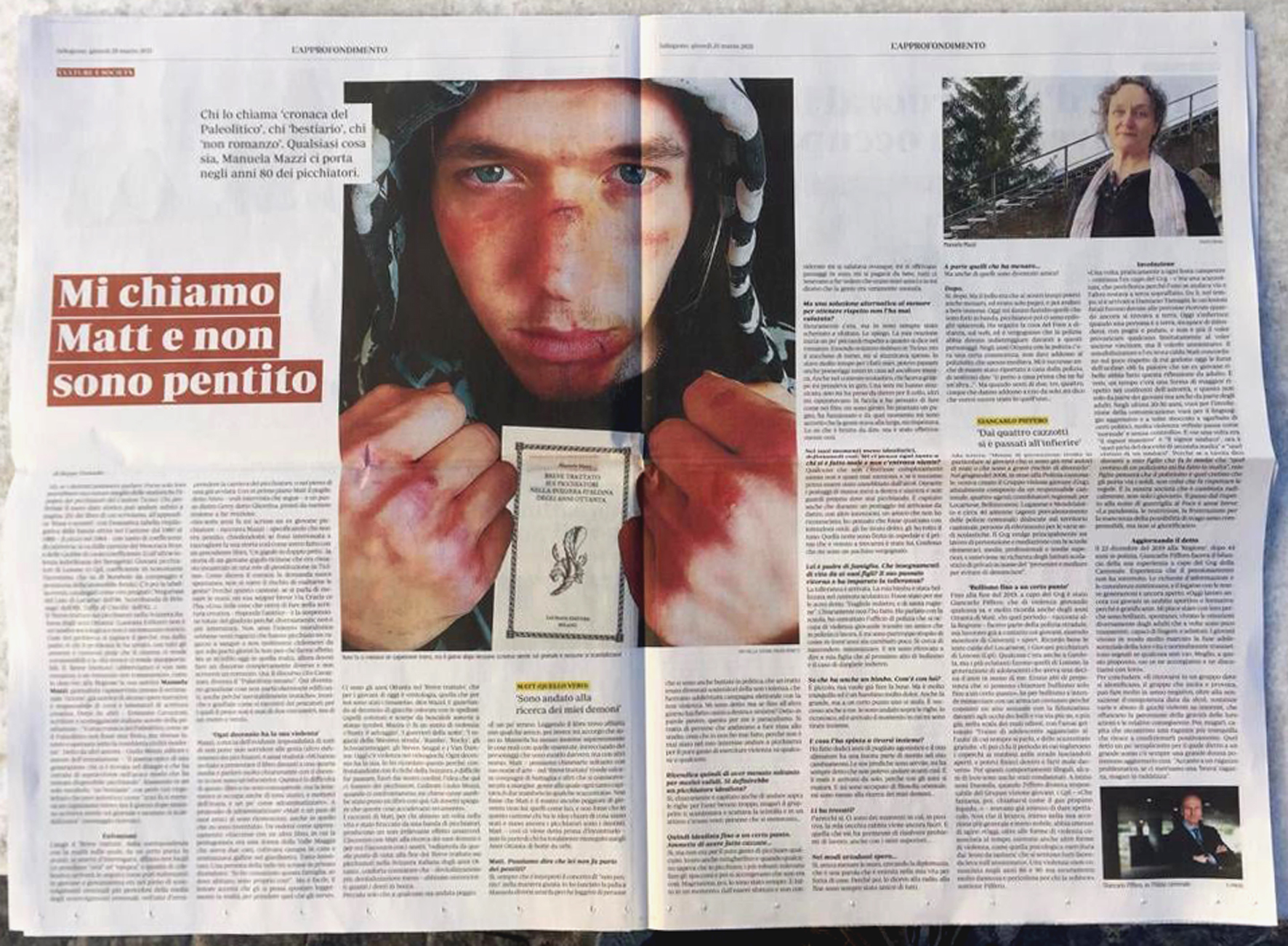 Strillo in prima pagina e doppia pagina interna, nell’edizione su carta del quotidiano «LaRegione» del 25 marzo 2021, grazie a Beppe Donadio, per il «Breve trattato sui picchiatori nella Svizzera italiana degli anni Ottanta», secondo titolo della collana ‘fremen’ curata da Giulio Mozzi per l’editore Laurana. Da oggi in tutte le librerie e nei negozi in rete. Parla anche «Matt»!