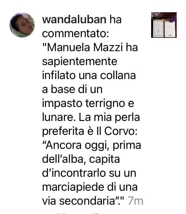«Lettura che sorprende senza motivo. La singolarità di questo libro di Manuela Mazzi consiste proprio nella sua inclassificabilità, nella sua sfuggevolezza, nella oggettiva impossibilità di categorizzarlo. Mi piace pensare che tutte le pagine rappresentino un guizzo creativo, una rottura dei classici costrutti narrativi per realizzare un percorso che si riempie di mito e di realtà, di farsa e di leggenda».