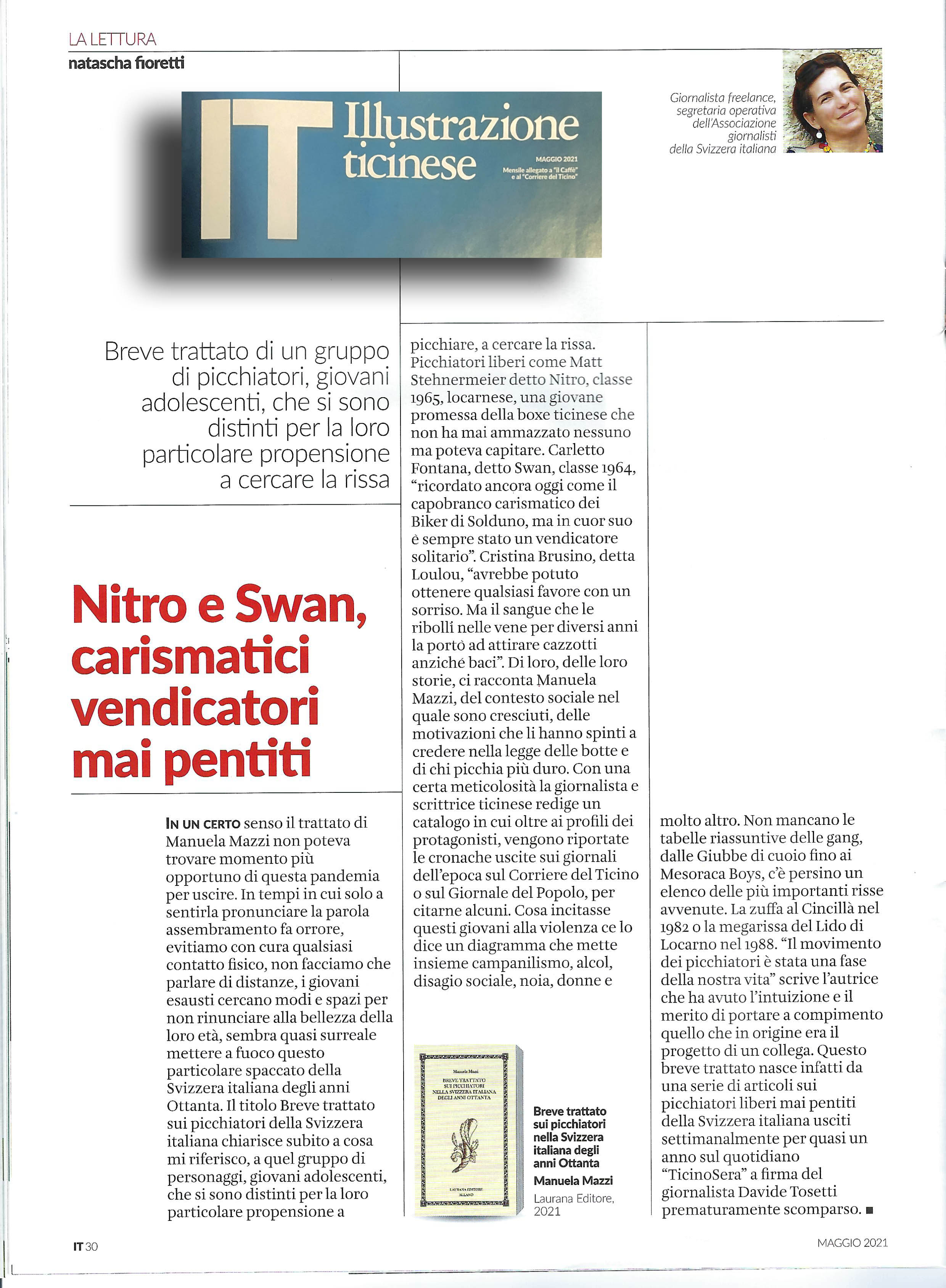 Ringrazio Natascha Fioretti per l’articolo sul Breve trattato sui picchiatori nella Svizzera italiana degli anni Ottanta apparso oggi nell’Illustrazione Ticinese.