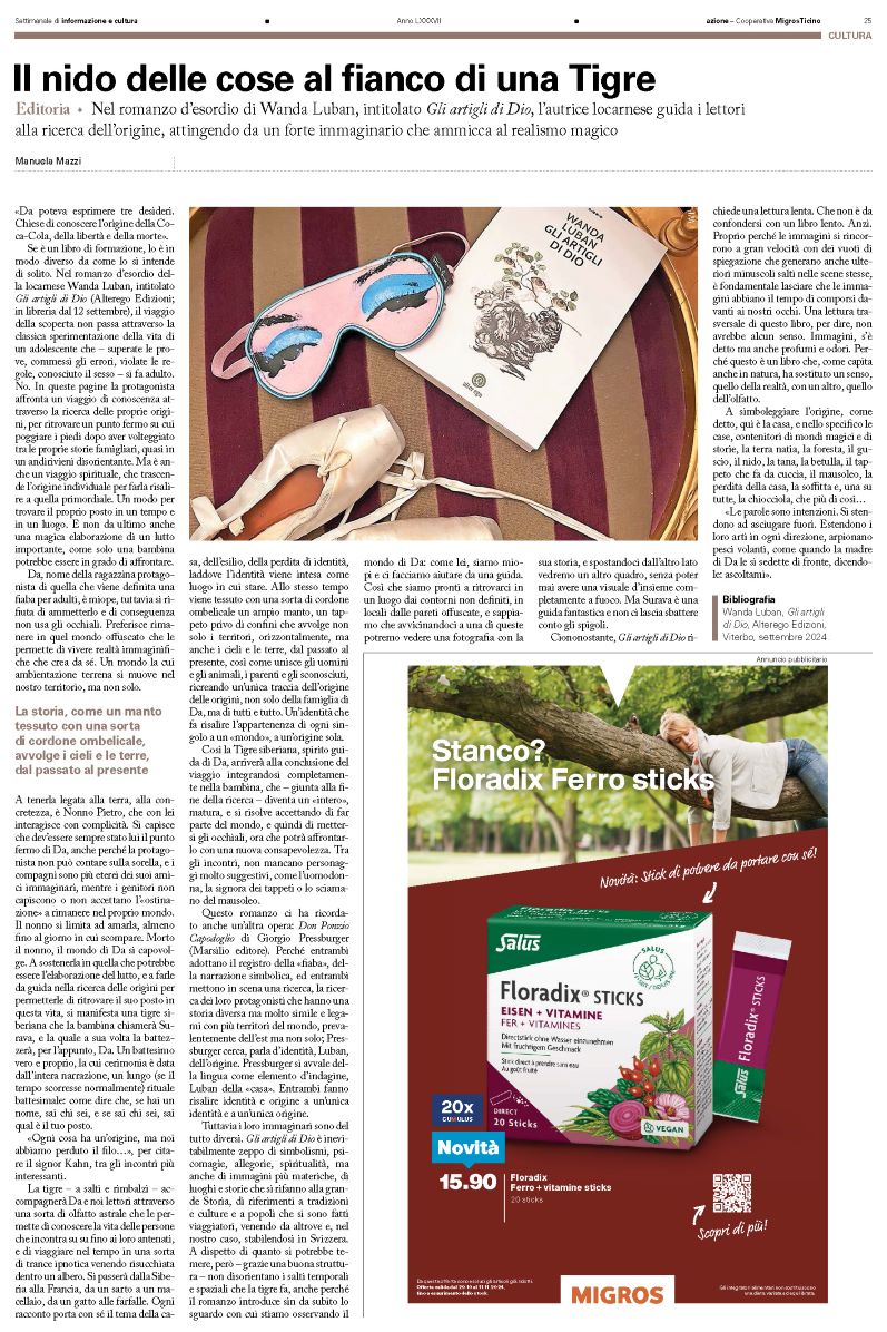 È uscita in questi giorni su «Azione» la mia nota di lettura sul romanzo di esordio di Wanda Luban, Gli artigli di Dio. La versione integrale del testo – per chi desidera leggerlo ma non ha accesso al cartaceo – si trova scrollando verso il basso oppure online (www.azione.ch, on richiede iscrizioni perché è un settimanale d’approfondimento gratuito).