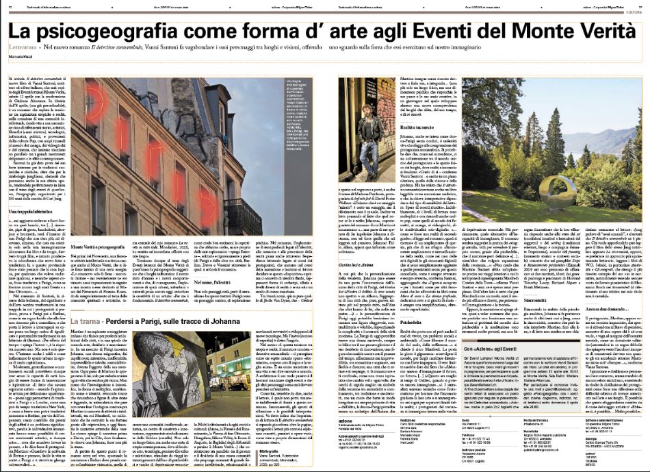 Nel settimanale Azione, il mio commento-intervista all’ultimo romanzo di Vanni Santoni, Il detective sonnambulo, ospite, il 12 aprile, agli Eventi letterari di Ascona.