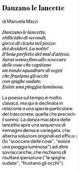 …quale lusinga! Ringrazio Gilda Policastro, critica letteraria la cui schiettezza non è inferiore alla sua simpatia. E la ringrazio non solo per aver pubblicato qualche mio verso, ma anche e soprattutto per il commento-insegnamento che tenterò di mettere a frutto nei futuri esercizi. 😊 E grazie pure a «la Repubblica». Certo.
