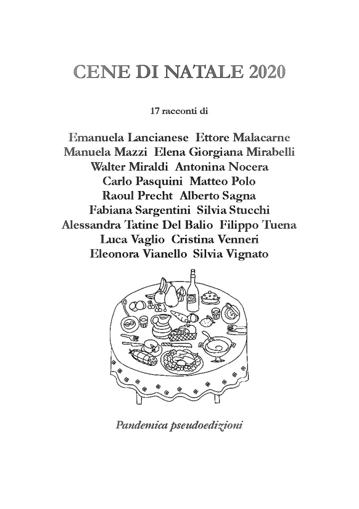 A esordire è la raccolta «Cene di Natale», racconti o versi, e in ogni caso testi brevi, che gli autori – tra i quali, anche io – regalano ad amici, ma non solo, quale strenna natalizia.