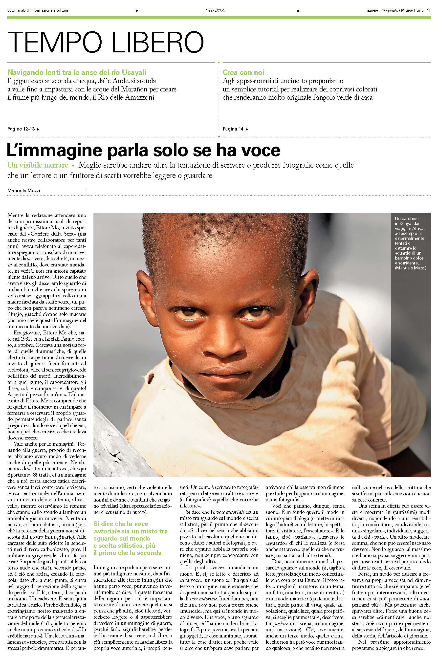 È uscito oggi su Azione il secondo articolo che ho scritto sul tema Un visibile narrare.